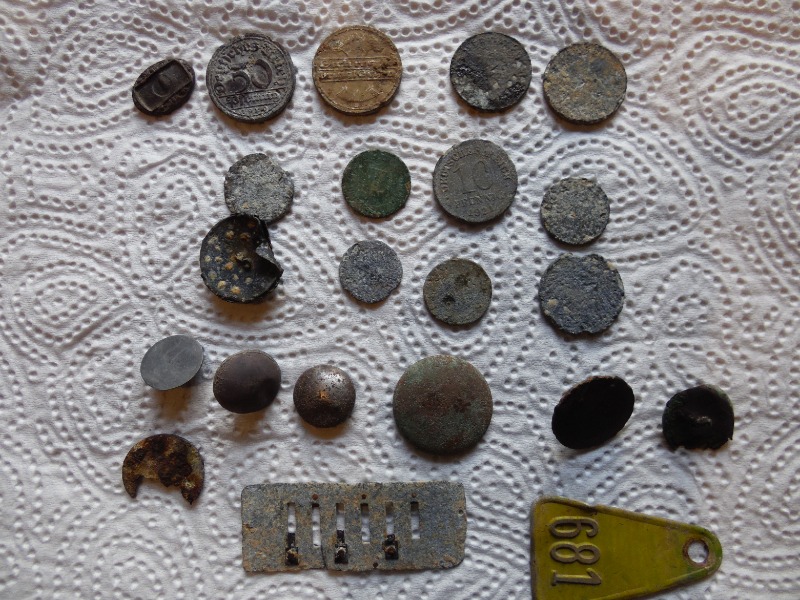 Jetzt schaute ich noch mal genauer hin und nach und nach fanden sich immer mehr Münzen und Knöpfe an dieser stelle , sie waren aus Zeitabschnitten der Deutschen Geschichte, vom Kaiserreich bis in die Neuzeit auch Köpfe hatten ein unterschiedliches Alter.
