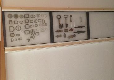 Anbei ein Bild meiner neusten Idee, wie man Funde schön in Szene setzen kann ! Zwar noch lange nichts fertig....aber ein Anfang ist gemacht ! Selber ein Schubsystem an der Wand gebaut mit Leisten !