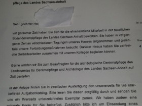 Ich habe im Oktober letzten Jahres meinen Antrag als ehrenamtlicher Mitarbeiter der Bodendenkmalpflege abgegeben und aufgrund meines Engagements will mich mein Archäologe bei ihrer nächsten Sitzung vorschlagen.