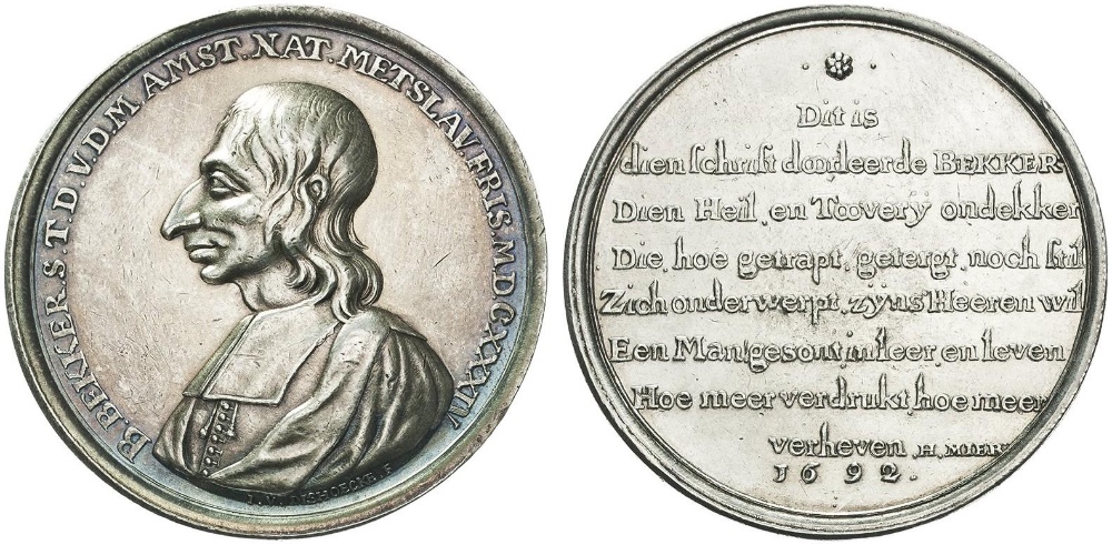Hier die Beschreibung dazu: NIEDERLANDE. AMSTERDAM. Stadt. Satirische Silbermedaille 1692, von J. van Dishoecke, auf den Prediger und Hexentheoretiker Balthasar Bekker