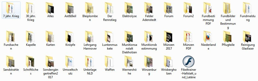 Auf der Festplatte habe ich verschiedene Ordner angelegt, wo ich abhängig vom Thema Informationen in Bild und Schrift sammel.