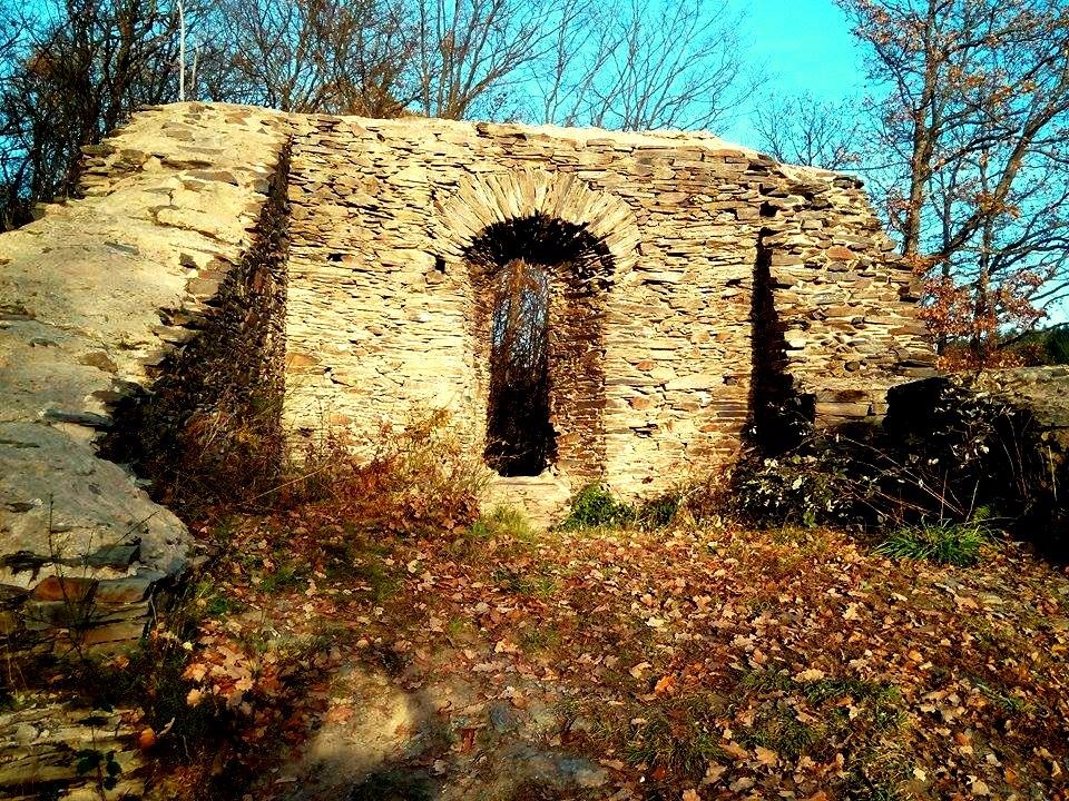 Die Ruine steht auf einer Anhöhe über einem Bach in leider bewaldetem Gebiet. (Also leider nichts zum Sondeln