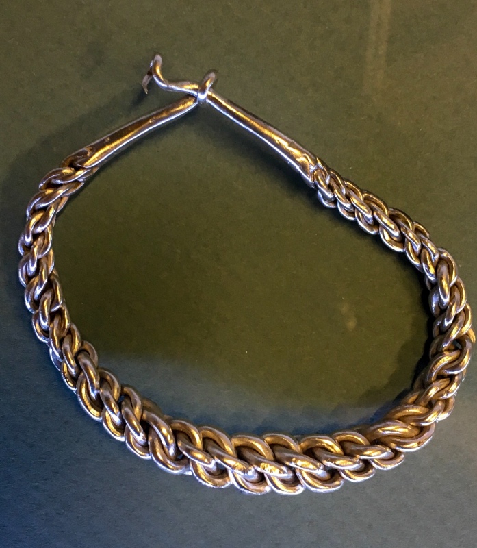 Dann der Sprung in dieses Jahr: Da man wusste, wo der Landwirt seine Flächen hatte und Hand der Beschreibungen, war der Fundort gut einzugrenzen. Nach einigen kurzen Sondierungen (die gesamte Bergung dauerte 3 Tage) begann man mit den verschiedensten Sonden zu suchen und wurde schnell fündig. Der Schatz war auf einer Fläche von ca. 50qm verteilt. Ein ehrenamtlicher Sondler schließlich kam auf eine fixe Idee: Er sagte sich, dass Gegenstände, die sich im Pflug eines Bauern verfangen, am ehesten im Vorgewende aus dem Pflug fallen würden und behielt Recht. Er fand dort ca. 50 Meter vom Fundort entfernt ein große silberne verbogene Nadel, die allen Fragen aufwarf, zumal sie an einem Ende eine Zapfung aufwies, die sich keiner erklären könnte! Bis jemand sich an die Ringfibel erinnerte, die vor ca. 60 Jahren gefunden wurde! Diese wies eine Bohrung auf, in die diese Nadel passen könnte. Und so war es dann auch! Das war für mich die eigentlich Sensation gestern und machte deutlich, dass man sich in Situationen einfach nur hineindenken muss, um erfolgreich zu suchen. Ich hatte die Gelegenheit, mich länger mit dem Finder zu unterhalten. Netter Typ.