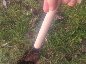 Heute habe ich mal 5 Euro und 5 Minuten Arbeit in einen Rostspachtel aus dem Baumarkt investiert. Ich habe das Blatt etwas gerundet und am Griffende ein T-Stück angebracht. Jetzt kann man damit ganz bequem kleine Löcher aus dem Rasen ausstechen um z.B. in Parks oder auf Liegewiesen Münzen zu bergen.