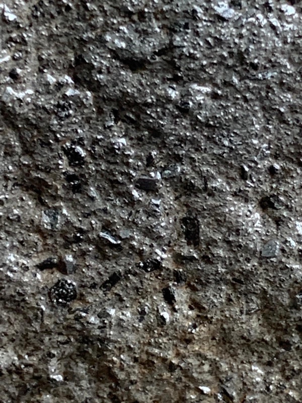 Auf Nachfrage bei einem befreundeten Mineralogen kam heraus, dass es sich wohl um Ilmenit oder auch bekannt unter Titaneisenerz handelt. Ich habe mal ein paar Fotos in den Anhang gepackt.
